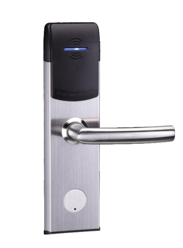 This compact hotel lock delivers dependable access control with a durable stainless steel build and space-saving design.